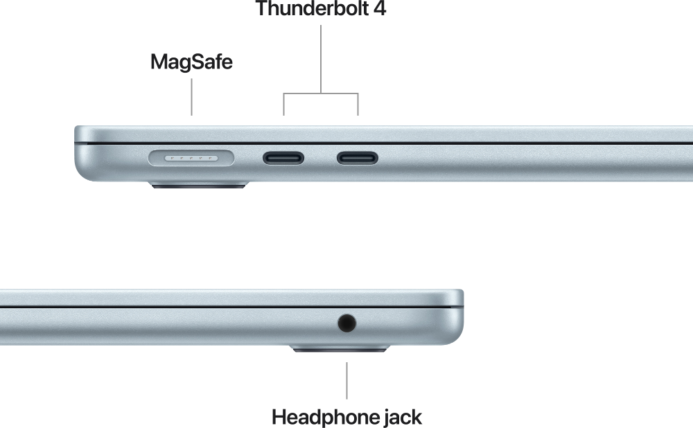• ANSLUT ALLT – MacBook Air har två Thunderbolt 4-portar, en MagSafe-laddningsport, ett hörlursuttag och Apple N1-chippet för trådlös anslutning samt wifi 7 och Bluetooth 6. Och den har stöd för upp till två externa skärmar.