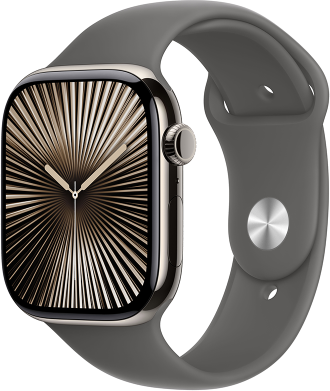 Apple Watch Series 10 GPS + Cellular 46mm Titanboett Naturlig • Sportband Granitgrå - M/L