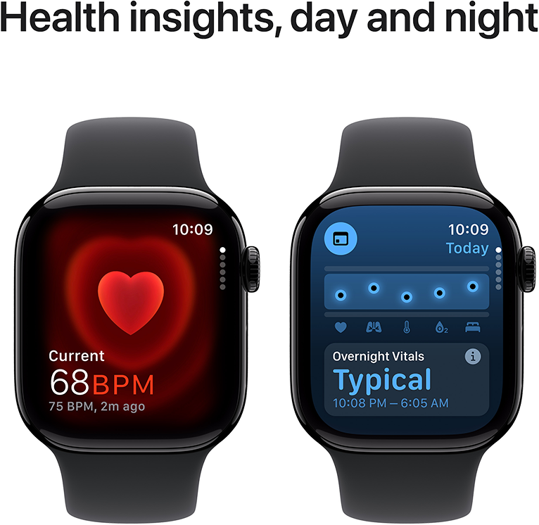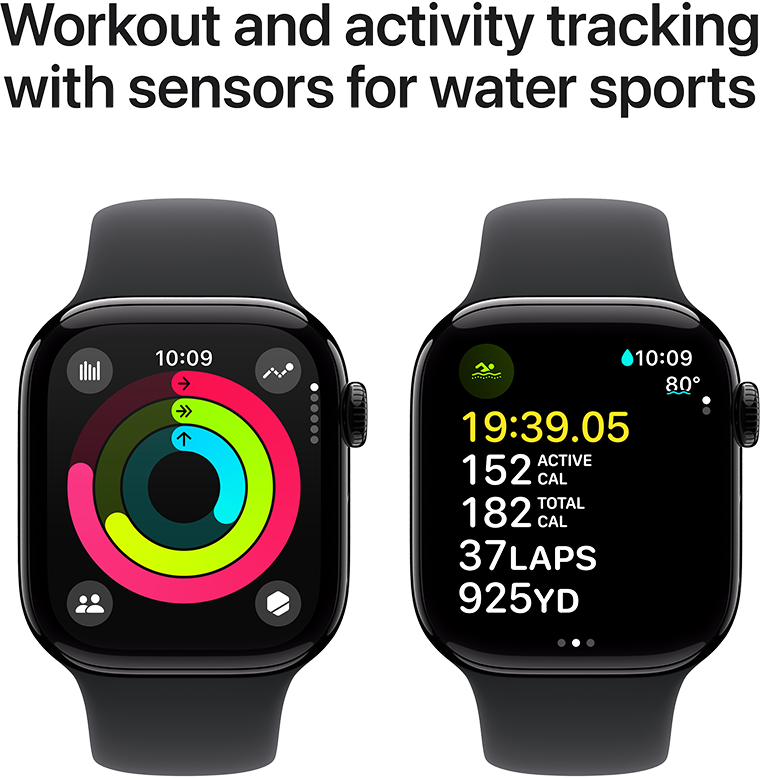 Apple Watch Series 10 GPS 42mm Aluminiumboett i Gagatsvart • Sportband Svart - S/M