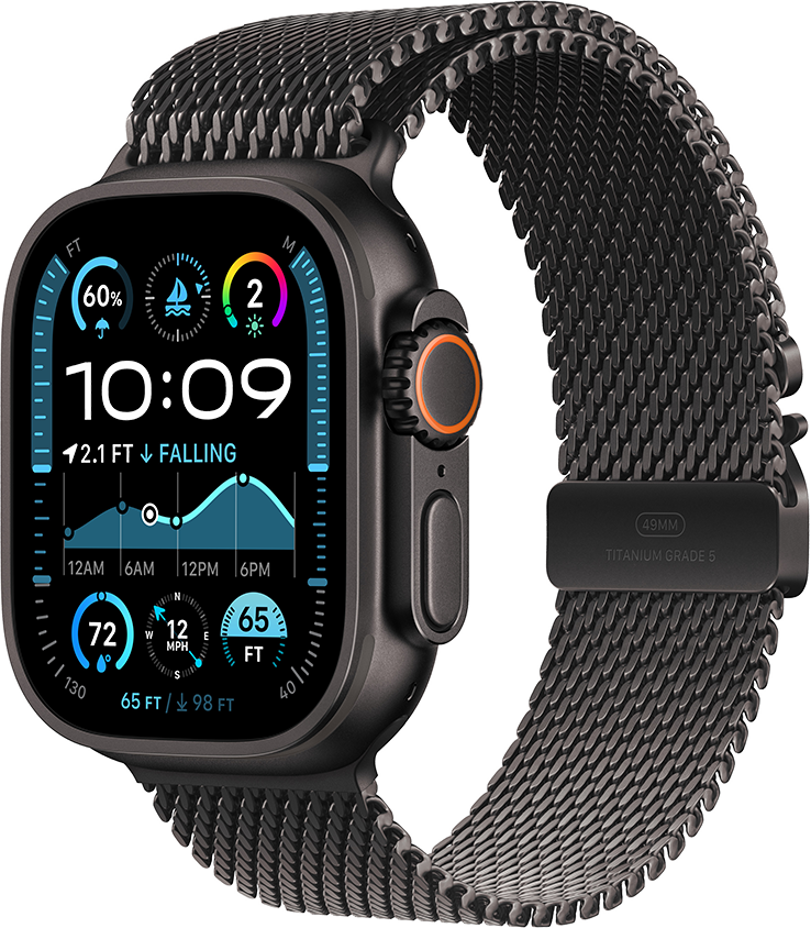 Apple Watch Ultra 2 GPS + Cellular 49mm Titanboett Svart • Milanesisk loop i titan Svart - S
