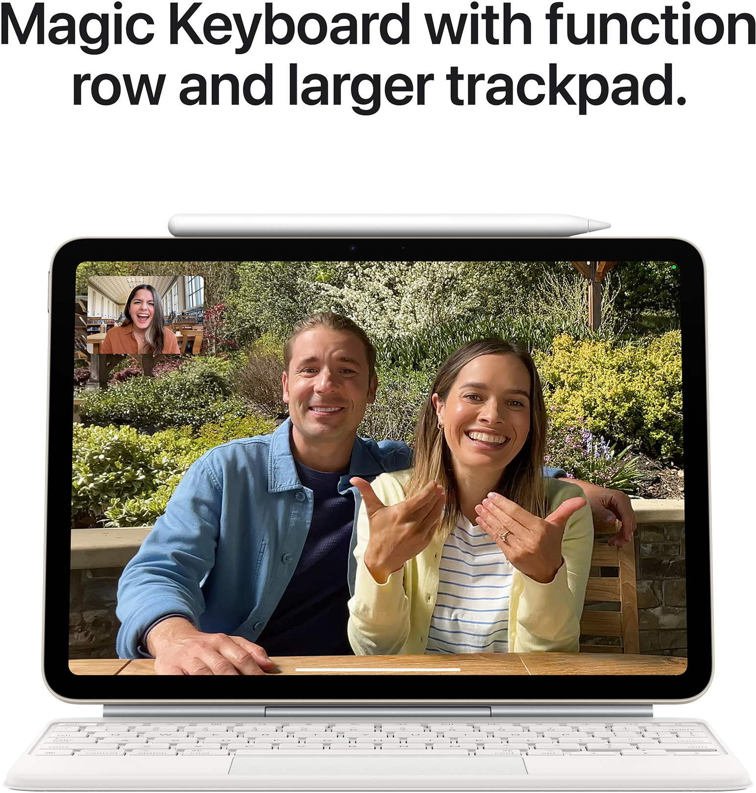 • APPLE PENCIL OCH MAGIC KEYBOARD – Apple Pencil Pro förvandlar iPad Air till en inbjudande målarduk och världens bästa verktyg för anteckningar. Apple Pencil (USB-C) fungerar också med iPad Air. Magic Keyboard till iPad Air är suveränt att skriva på. Det har en inbyggd styrplatta, en rad med 14 funktionstangenter och fungerar även som ett skydd för enheten. Tillbehör säljs separat.