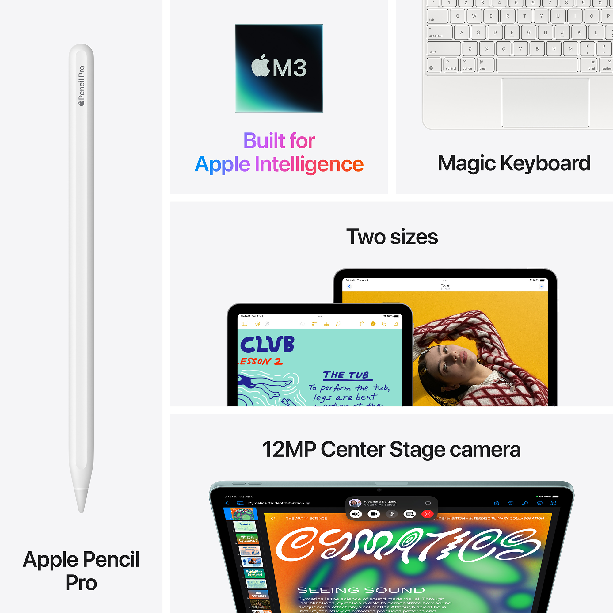 • APPLE PENCIL OCH MAGIC KEYBOARD – Apple Pencil Pro förvandlar iPad Air till en inbjudande målarduk och världens bästa verktyg för anteckningar. Apple Pencil (USB-C) fungerar också med iPad Air. Magic Keyboard till iPad Air är suveränt att skriva på. Det har en inbyggd styrplatta, en rad med 14 funktionstangenter och fungerar även som ett skydd för enheten. Tillbehör säljs separat.