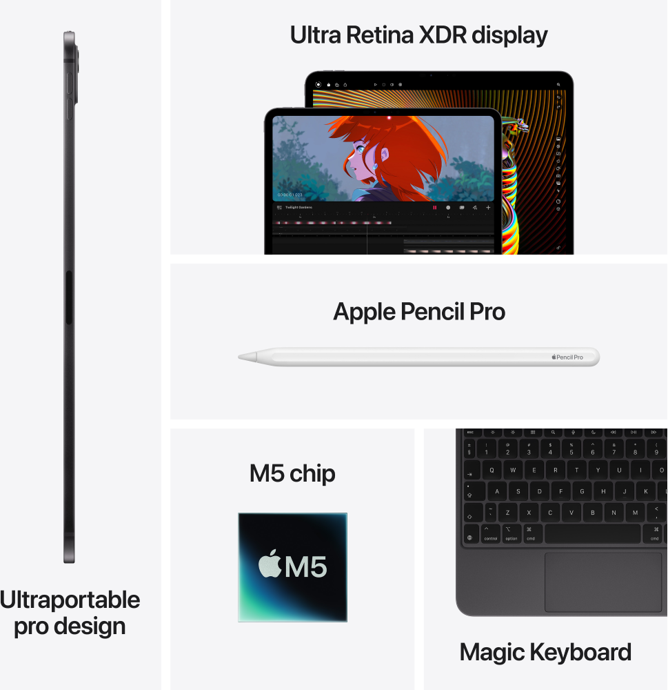 iPad Pro 13 tum M5 Wi‑Fi + Cellular 2TB med standardglas – S
